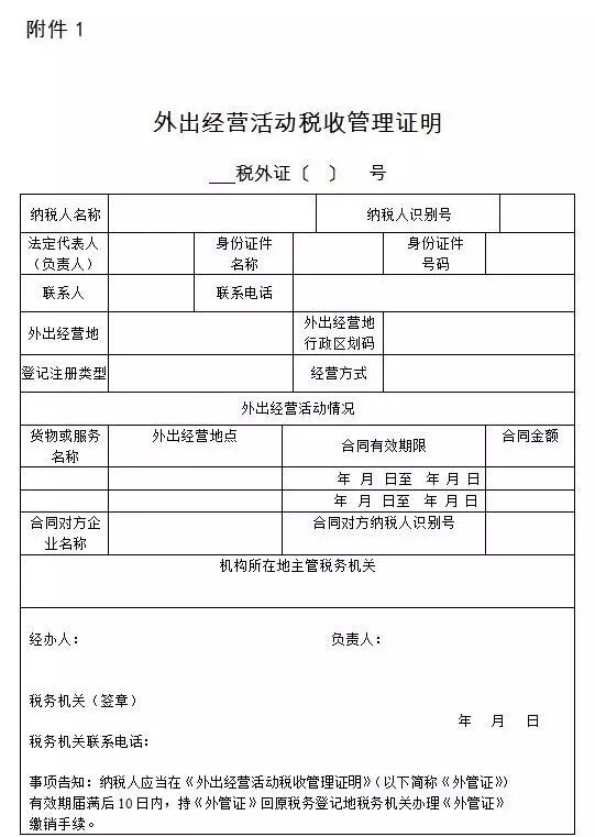 附件:1.外出經(jīng)營(yíng)活動(dòng)稅收管理證明