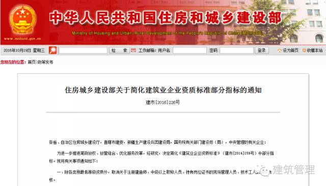 為進(jìn)一步推進(jìn)簡(jiǎn)政放權、放管結合、優(yōu)化服務(wù)改革,經(jīng)研究,決定簡(jiǎn)化《建筑業(yè)企業(yè)資質(zhì)標準》(建市[2014]159號)中部分指標,F將有關(guān)事項通知如下: