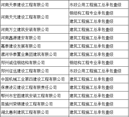 升為一、二級資質(zhì)和資質(zhì)增項的企業(yè)有: